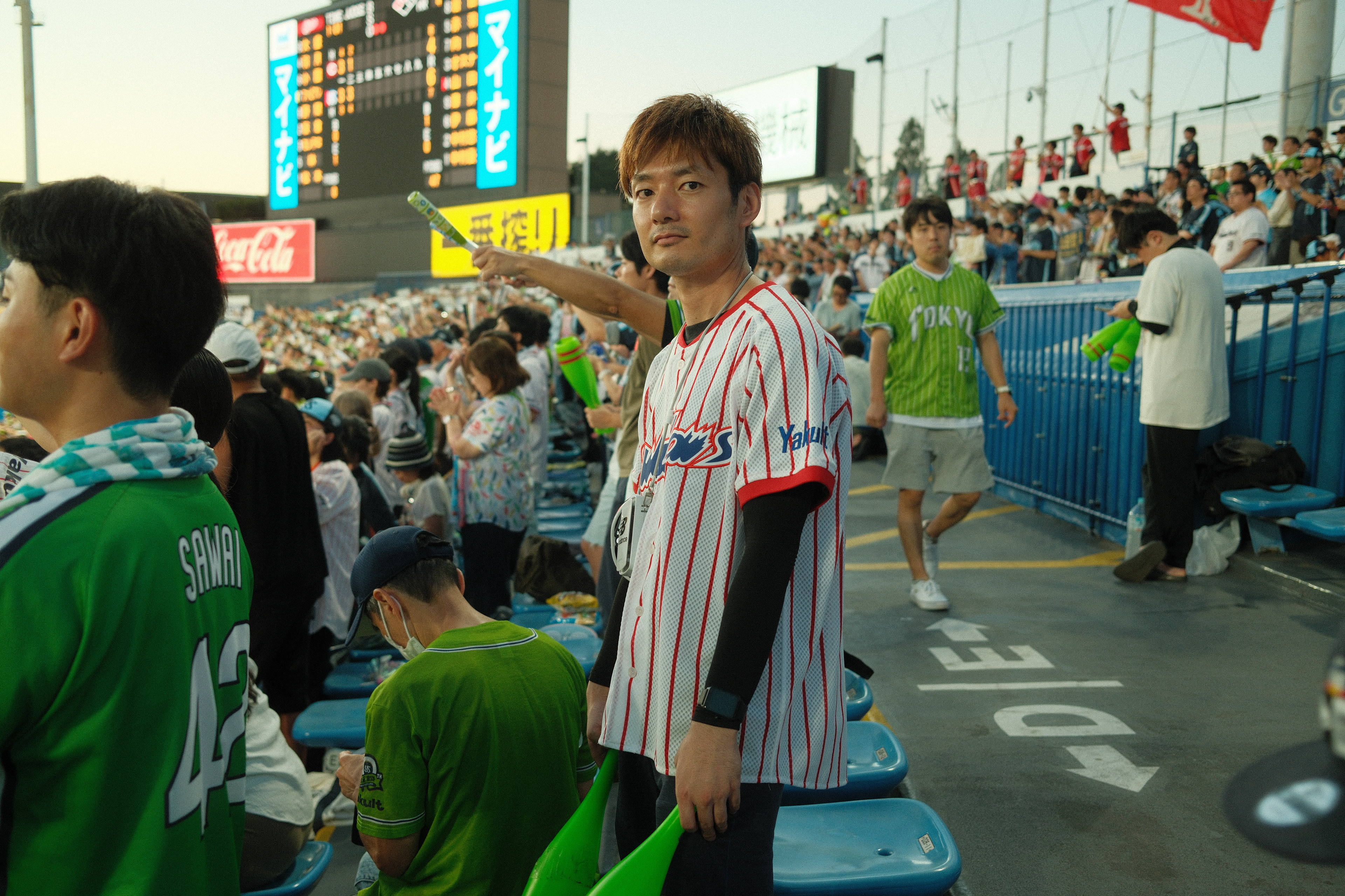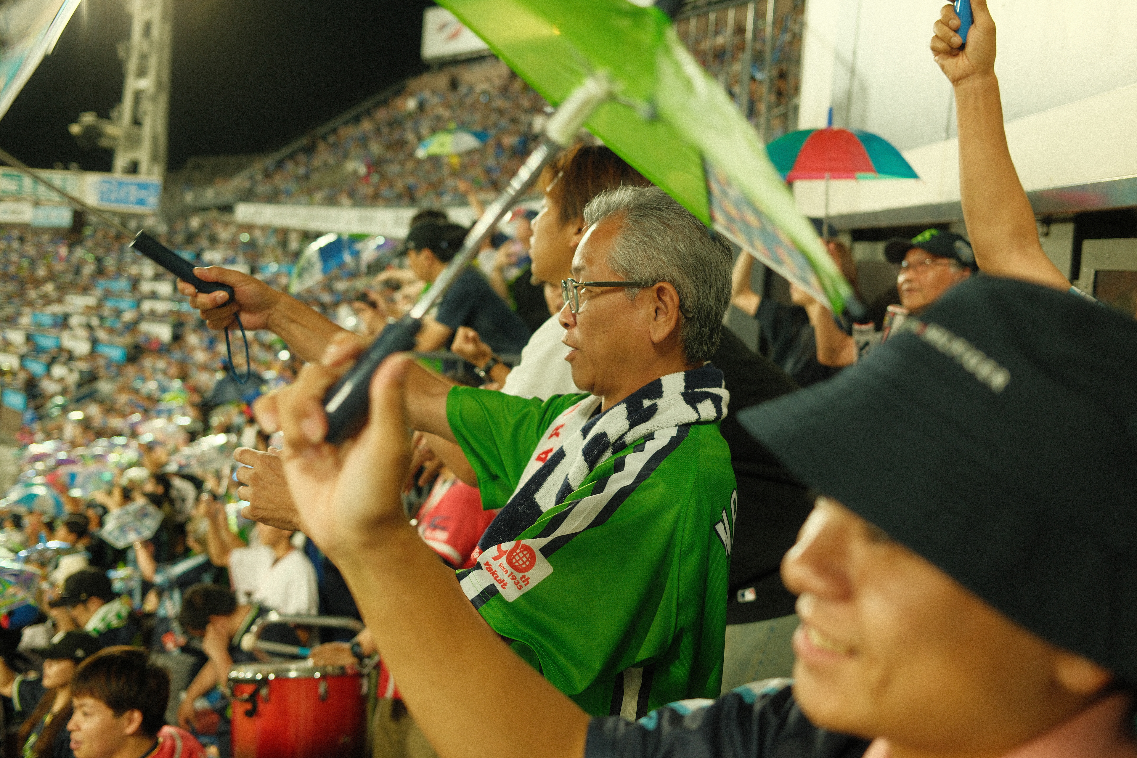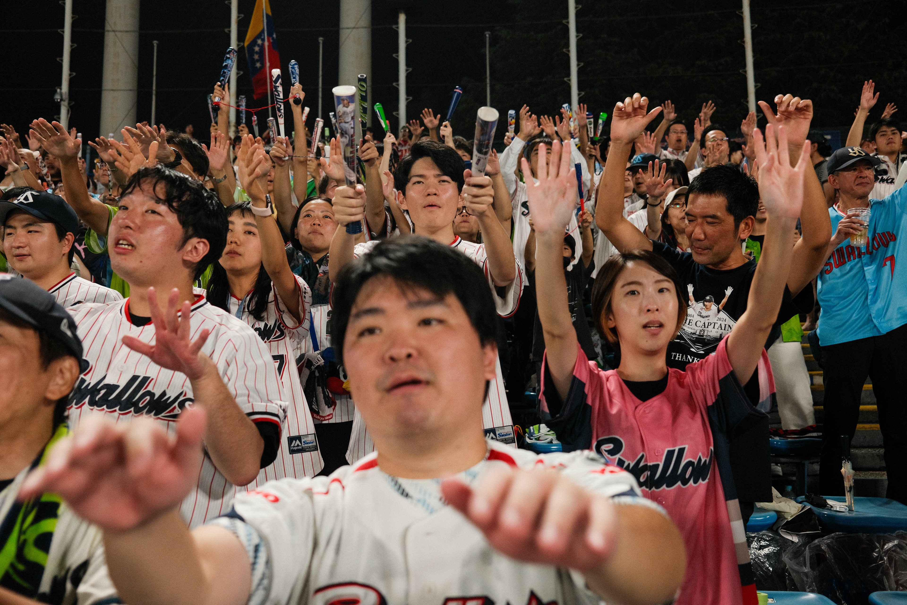 I’ve created a photo series called “Tokyo Ondo” documenting the passion, rituals, and style of Yakult Swallows supporters at Meiji Jingu Stadium. As a foreigner discovering the culture from the stands, I wanted to capture what makes Tokyo’s baseball scene so visually rich and emotionally powerful.